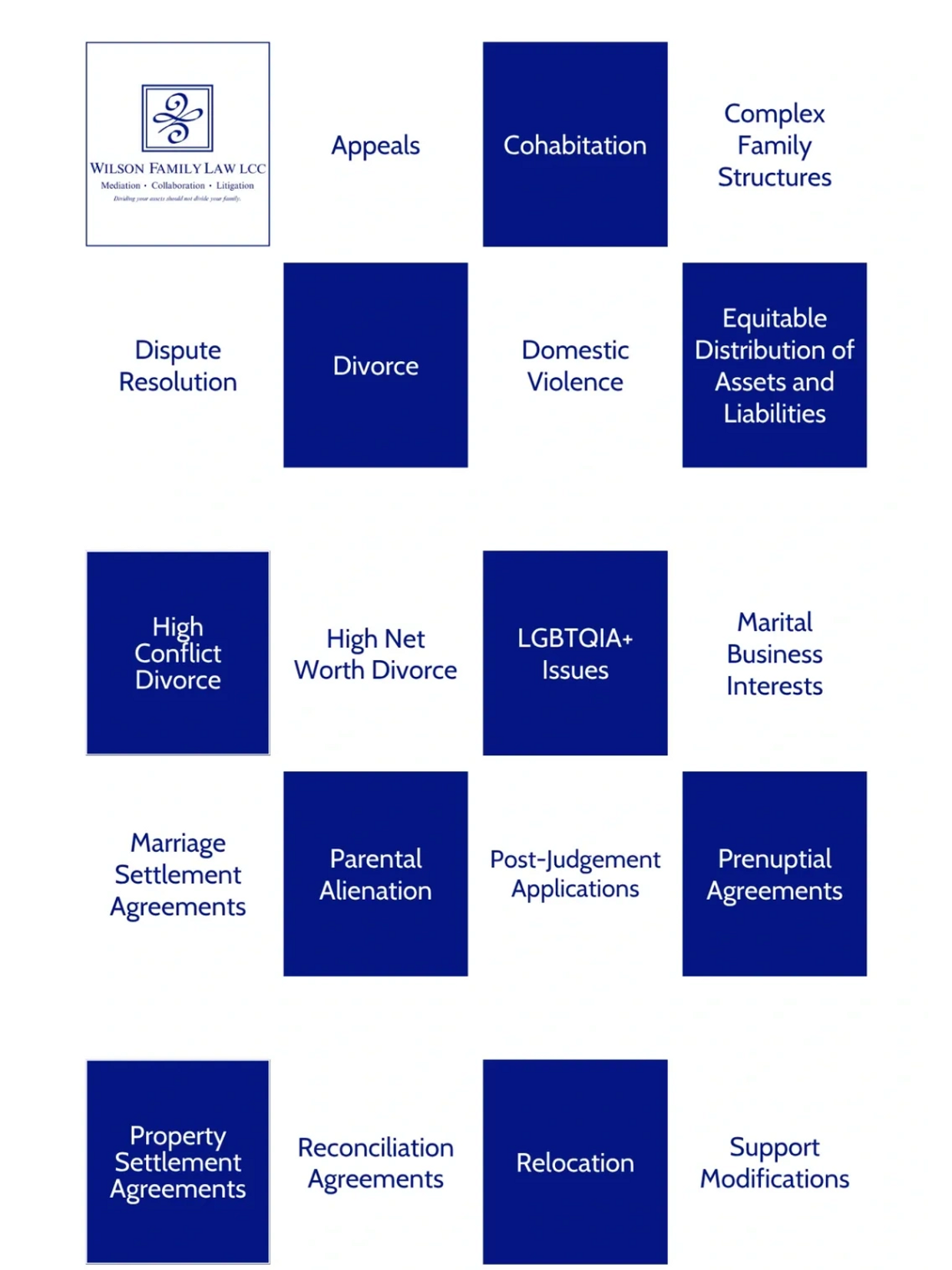 Copyright © 2025 Wilson Family Law LLC - The content of this website is for general information purposes only. It is not intended to give legal advice, nor does it create an attorney-client relationship. For this reason, you should not send any confidential information until an attorney-client relationship is formally established.